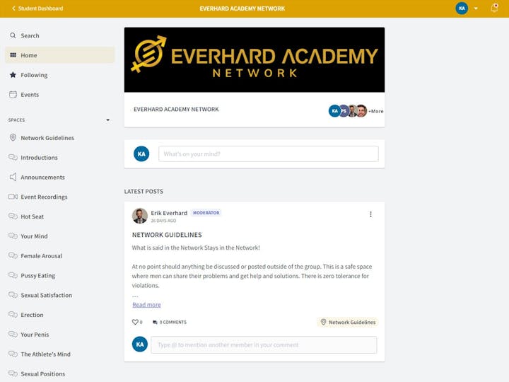 - MEMBERS ONLY CONTENT - Access frequent training, resources and exercises from the Everhard Academy to help you master high-level habits and supercharge your sex life.